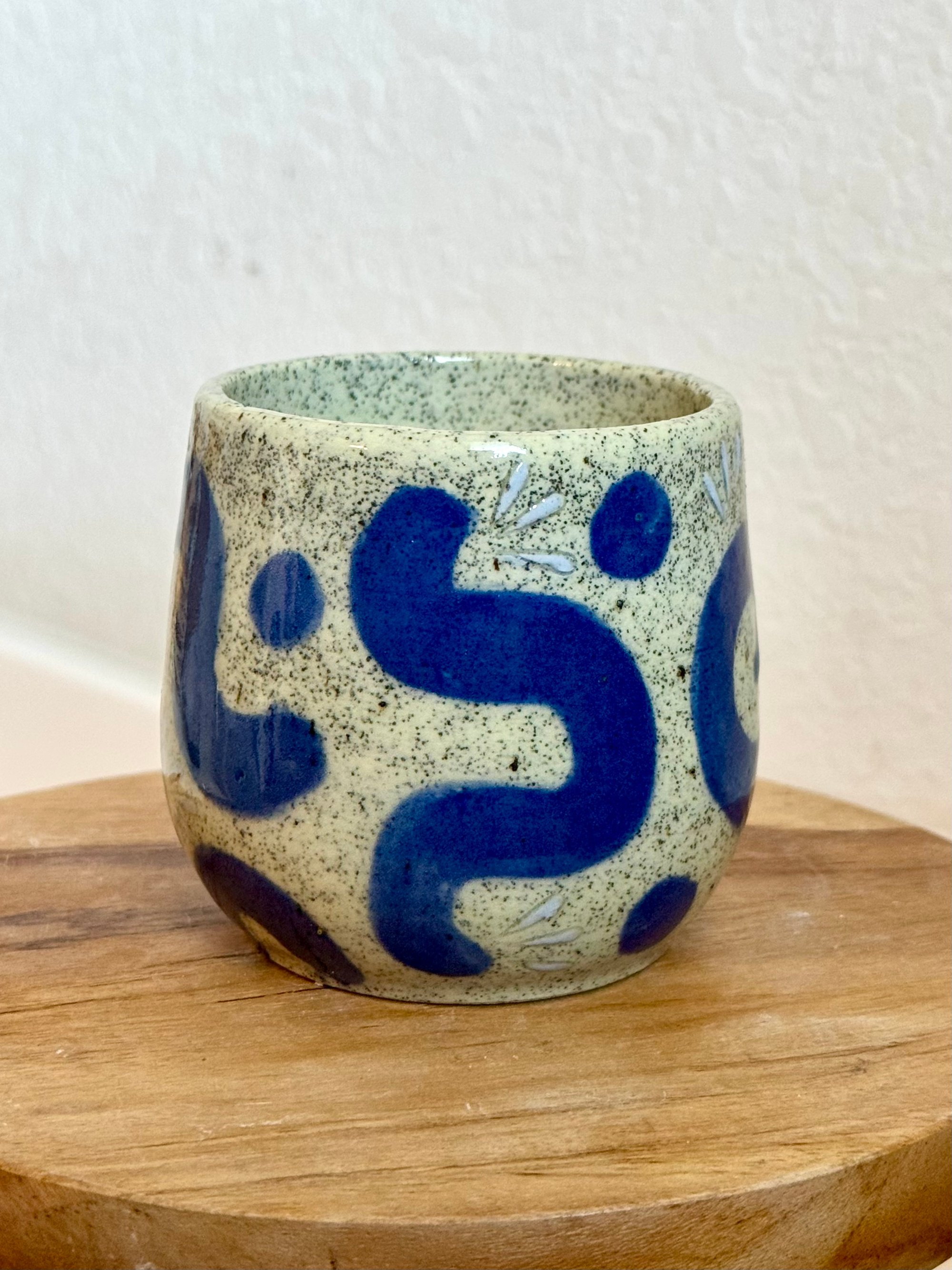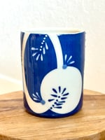 <p>These handmade cups feature bold slip-decorated designs in rich cobalt blues and earthy tones. Each pattern is carved and brushed directly into the clay, creating one-of-a-kind surfaces where no two cups are ever the same.</p>