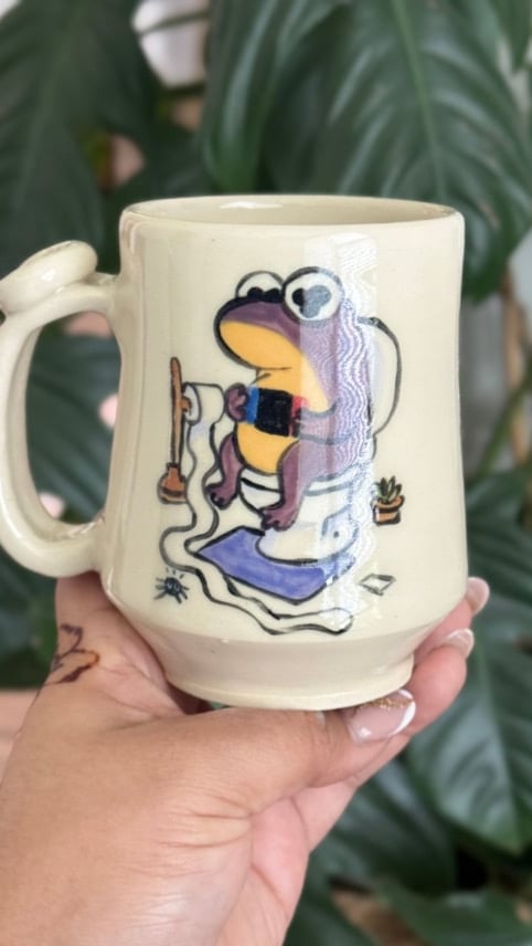 Each mug is handmade, so no two frogs will ever have the exact same vibe — just like bathroom breaks themselves.