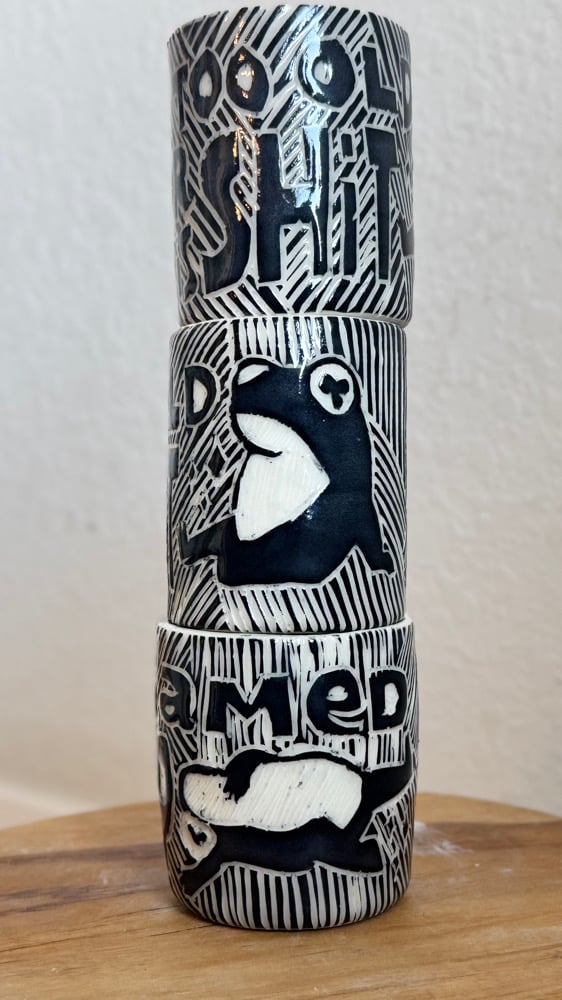 Whether it’s tequila, Pepto, or something mysterious from the swamp — these frog shot glasses are here for you. Each one is wheel-thrown, hand-carved, and glazed with maximum frog-level emotional accuracy. Designs include “I’m too old for this,” “Pregame with a nap,” and other chaotic frog mantras for the ages.