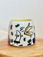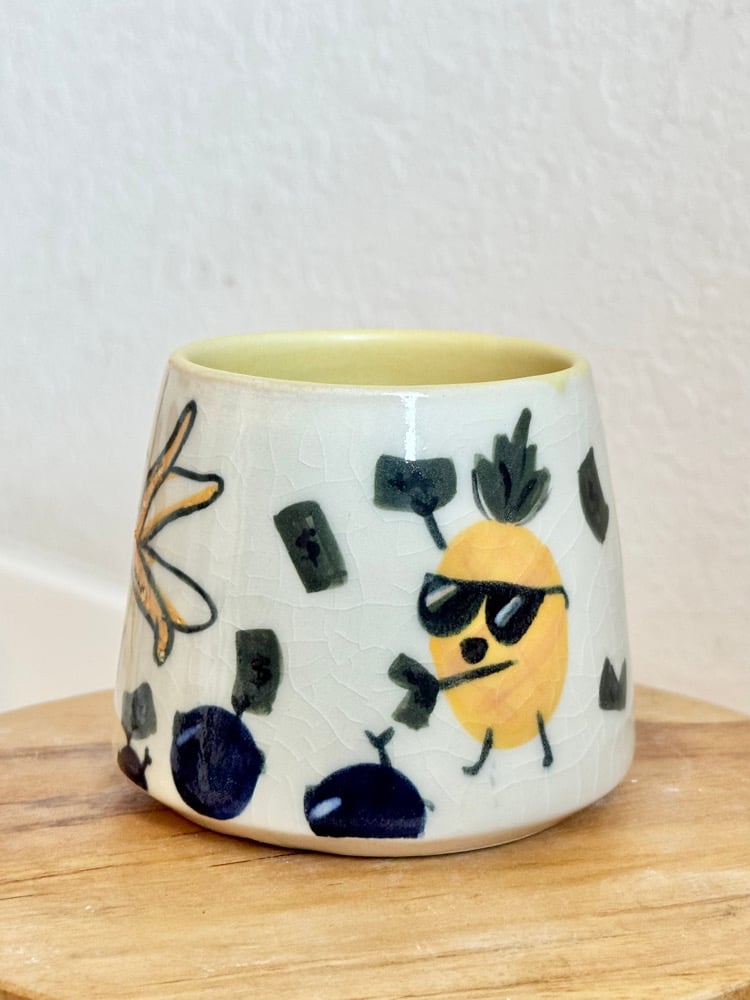 It started with a smoothie. Now you’re emotionally invested. This handmade ceramic cup features a banana mid-routine, peel flying, berries losing their minds, and dollar bills caught in the crossfire. It’s vulnerable. It’s sensual. It’s deeply stupid in the best possible way.