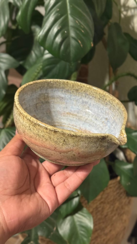 Handmade stoneware pour bowls with carved spouts, designed for both function and display. Perfect for pouring batter, sauces, or serving small-batch recipes. Each bowl is wheel-thrown with a speckled clay body and finished in a unique glaze style.
